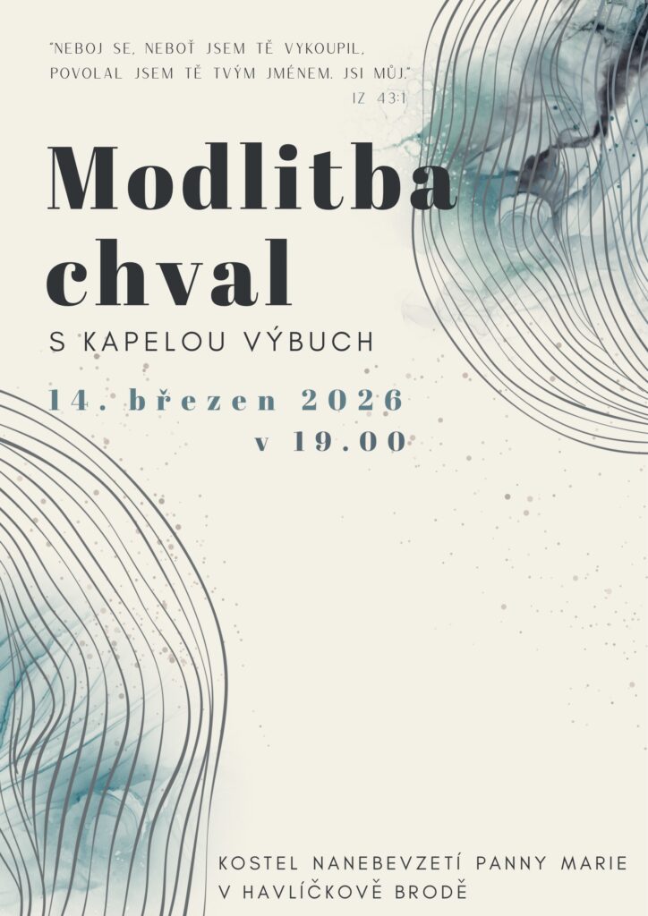 Adorovat můžeme v tichu pravidelně každý čtvrtek, ale adorovat s písní na rtech třeba při „Večerech chval s kapelou Výbuch“ a jak bylo avizováno v jiné pozvánce, nově i před každou ranní mší svatou první nedělí v měsíci… Říká se, že: „Kdo zpívá, dvakrát se modlí.“